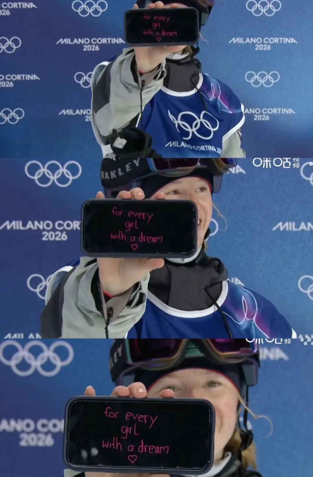 本届冬奥自由式滑雪女子大跳台预赛上发生了可爱一幕,德国选手Muriel Mohr完成第三跳后,在镜头前举起手机,上面是粉色的“for every girl with a dream”,尽管最终她未晋级决赛。