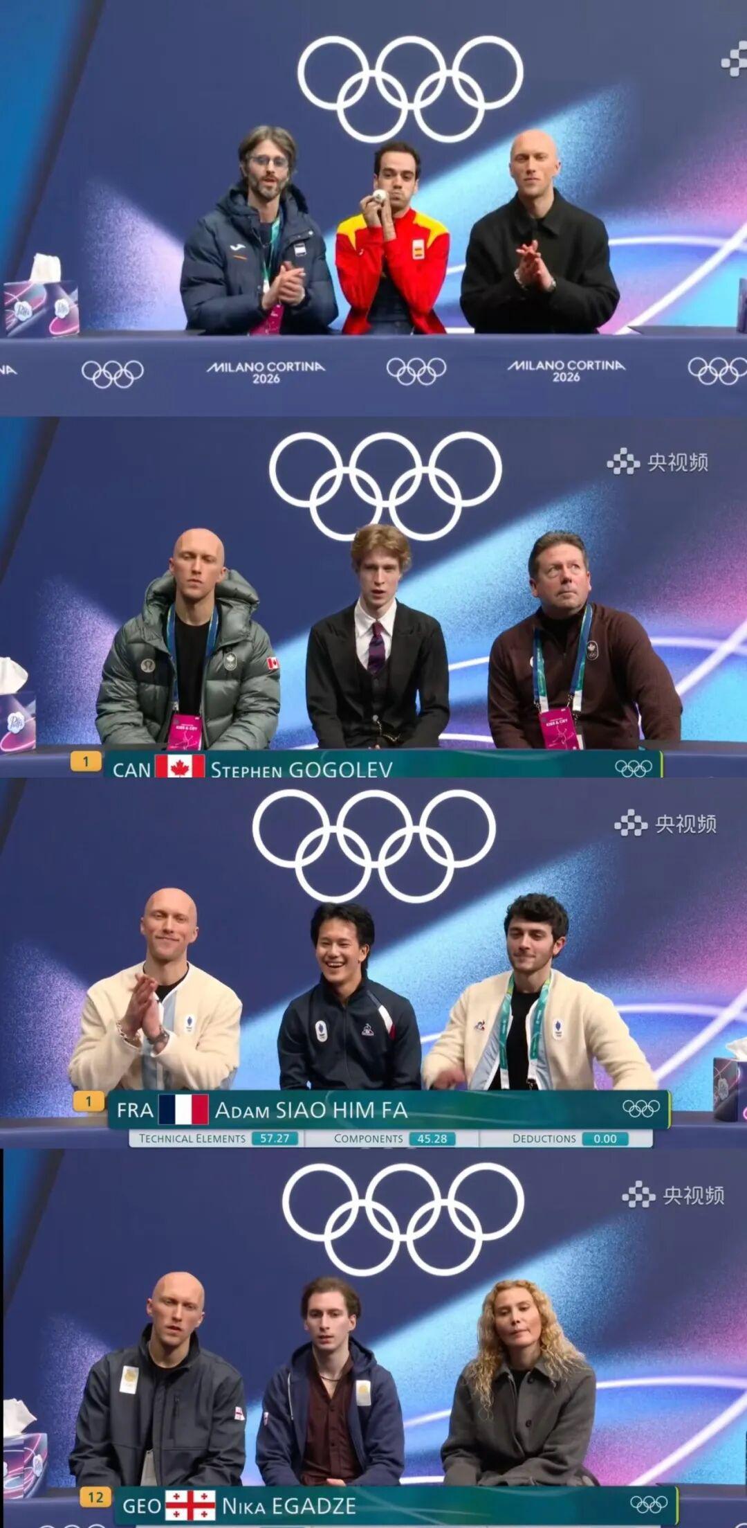米兰冬奥会花滑赛场,无数观众都注意到这位身形高瘦的光头男人。前一秒他在美国选手旁边,下一秒他又和法国选手站一起,接着是加拿大选手、墨西哥选手……并且和不同选手在一起,他都要换一件队服。